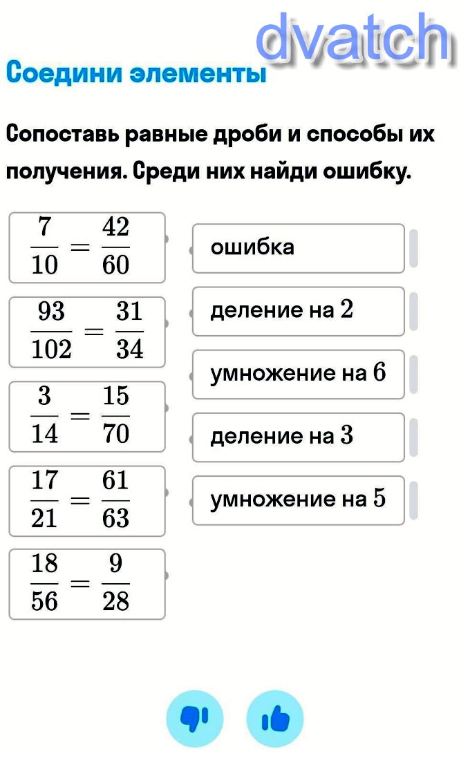 третья дробь умножение на пять , четвёртая дробь ошибка, пятая дробь деление на два