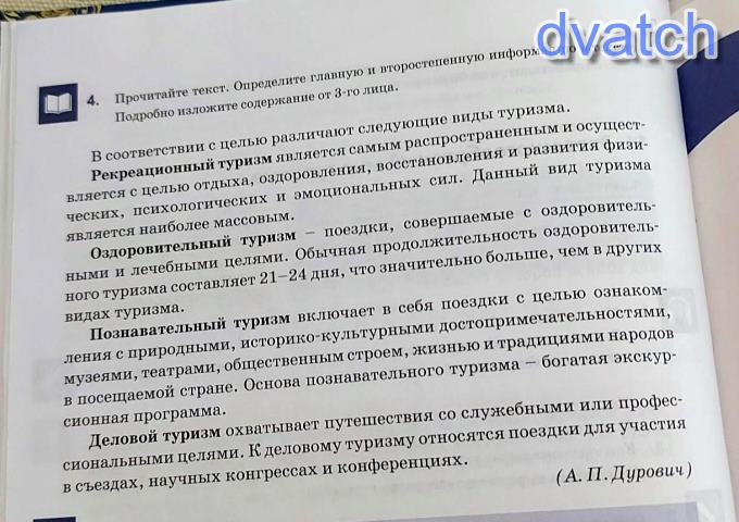 Туризм бывает нескольких видов: рекреационный, оздоровительный, познавательный и деловой.