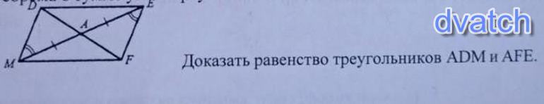 Треугольники АDM и АFE равны между собой по второму признаку равенства треугольников-по стороне и двум прилегающим к ней углам