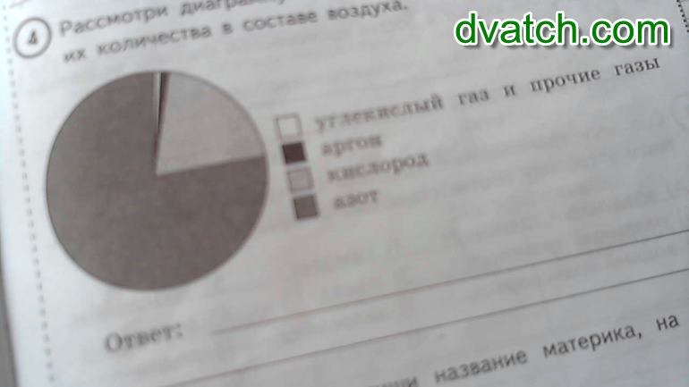 Рассмотри диаграмму. Запиши газы в порядке уменьшения их количества в составевоздуха.