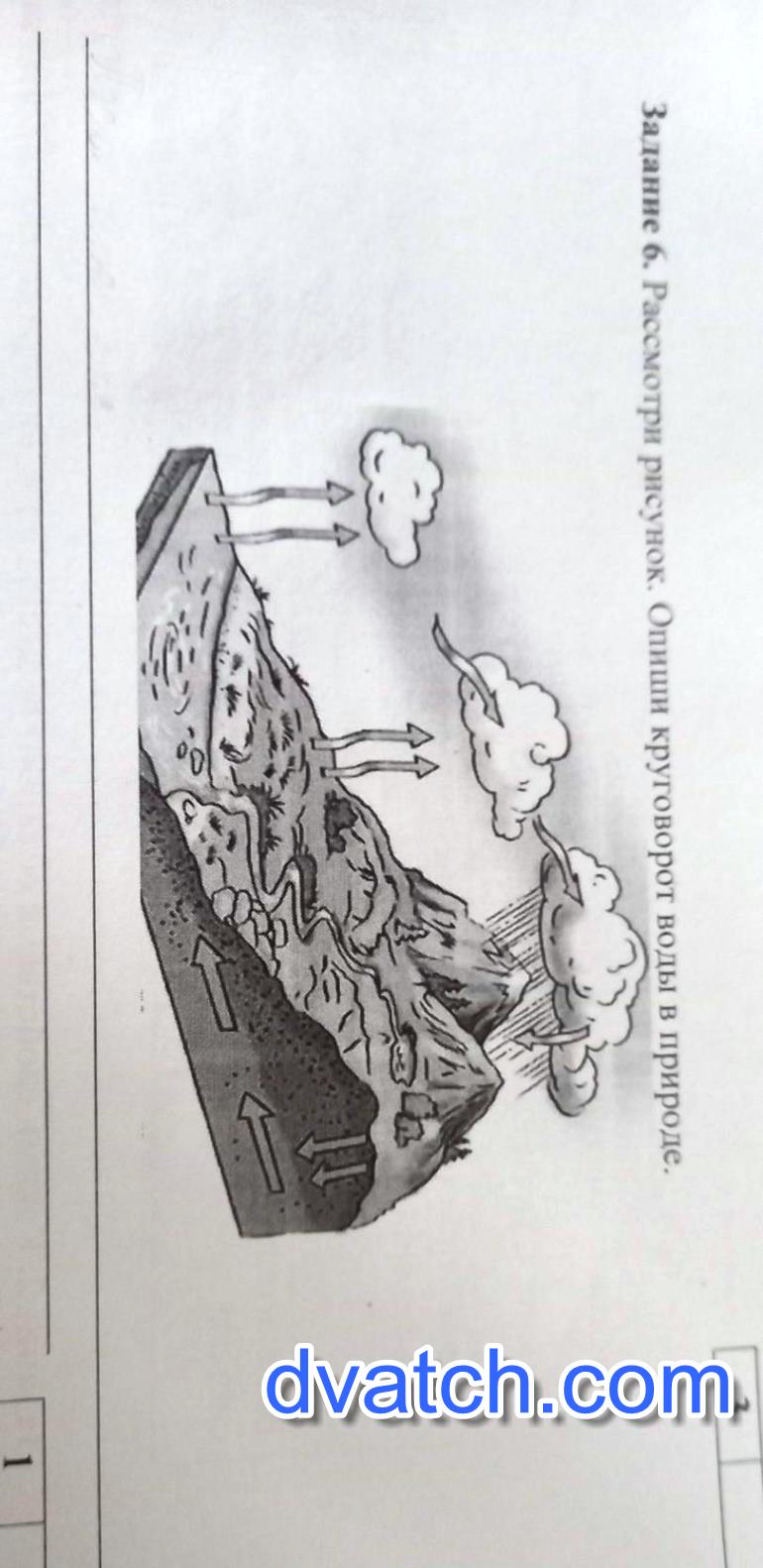 Задание 6. Рассмотри рисунок. Опиши круговорот воды в природе, посчитайте соч