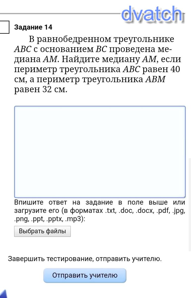 АМ=(64-40):2=24:2=12 см