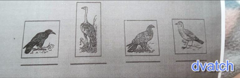 Предполагаю что первый это ворон, второй страус, третий голубь, четвертый воробушек(из-за хвоста)