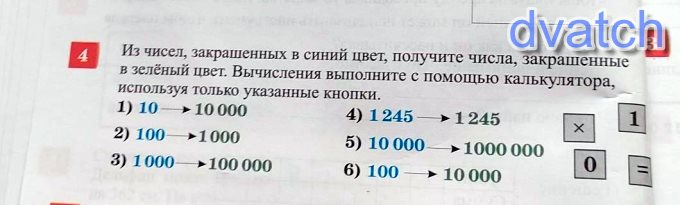 Из чисел, закрашенных в синий цвет, получите числа, закрашенные в зелёный цвет. Вычисления выполните с помощью калькулятора, используя только указанные кнопки. 1) 10 1 10 000 4) 1 245 1245 х 2) 100 1000 5) 10 000 1000 000 0 3) 1000 100 000 6) 100 10 000