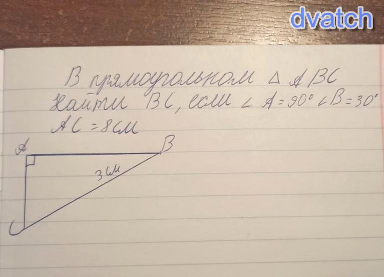 Сторона, которая лежит напротив угла в 30 градусов в прямоугольном треугольнике равна половине гиппотинузы.