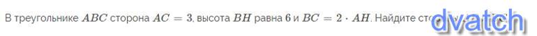 ВС = 6: АВ = 3√5 ≈ 6,708