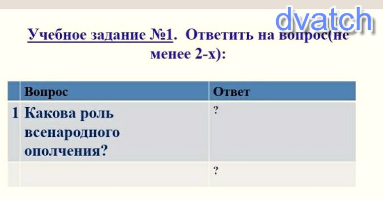 1)Народное ополчение - отряды вооружённого народа, сформированные вне связи с действующей властью. В создании народного ополчения проявились такие русские традиции как стремление к свободе, решимость отстаивать Православную веру, сильные национальные чувства (национализм), массовое проявление альтруизма (желание принести пользу своему народу, не имея при этом личной выгоды).
