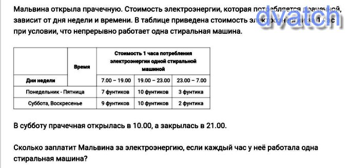 1) 19 - 10 = 9 (час) - работала прачечная по тарифу 9 Фунтиков в час