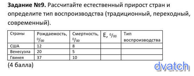 Рассчитайте естественный прирост стран и определите тип воспроизводства (традиционный, переходный, современный)