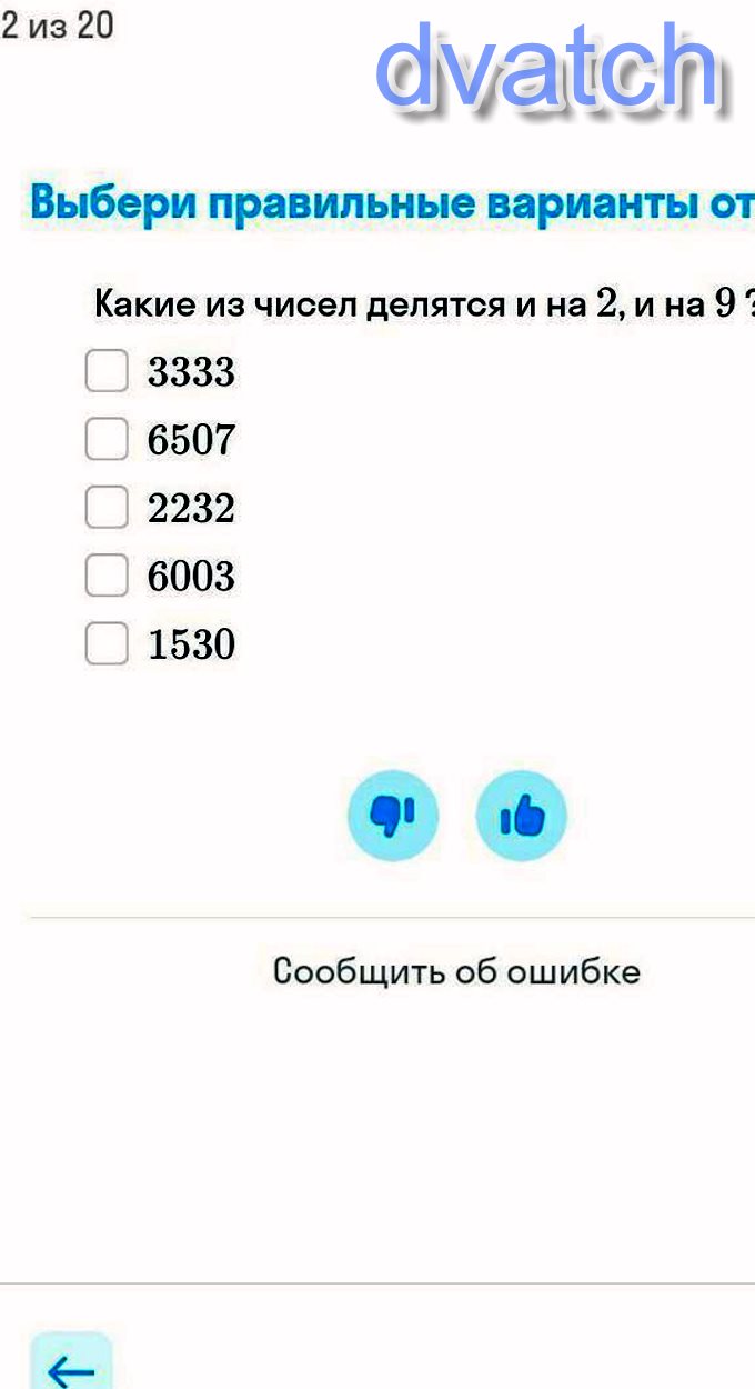 Признак делимости на 2: если число оканчивается на 0, 2, 4, 6, 8, оно делится на 2.
