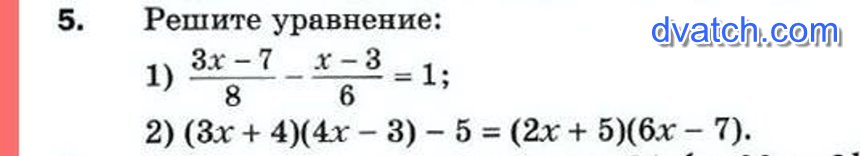 1) ((3x - 7) : 8) - ((x - 3) : 6) = 1