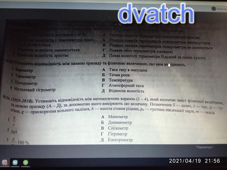 3) φ=ρ/ρо*100% - относительная влажность воздуха, гигрометр. 3 - Г.