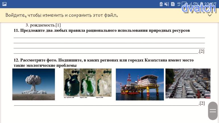 12. изображает иссыхание Аральского моря по причине слишком большого забора воды из впадающей в него реки Сырдарьи.