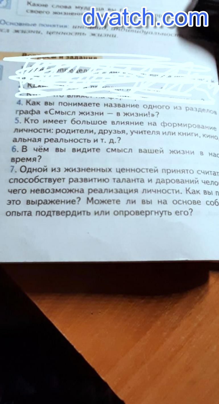 1. «Смысл жизни– в жизни», эта фраза говорит о том, что пока не нужно думать о том, какое твое предназначение, все придет со временем, когда Вы будете жить, а не существовать. 2. На формирование личности влияет окружение и в основном отсутствие увлечений. Если в жизни человека нету творчества, то это очень сильно повлияет на личность, а конкретно, может деградировать мозг. . . 3. Смысл жизнь – в том, чтобы жить и радовать своих близких, отдавать гараздо больше тепла и ласки, чем дано. Стремиться к чему-то. 4. Не видно. . .