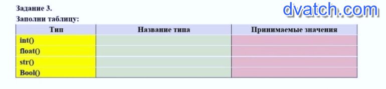 int() - целые числа (например: 100, 50, 25)
