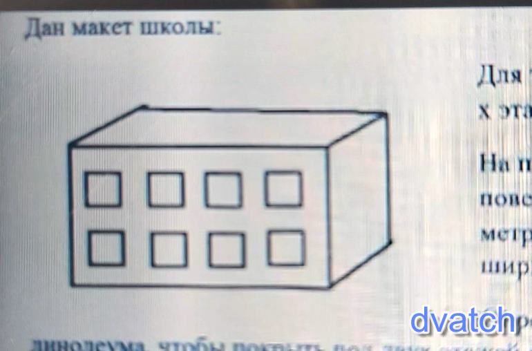 Дан макет школы:Для того, что бы поменять линолеум на полу на 2-х этажах, нужно найти его площадь. На плане известна площадь стен (боковая поверхность) 560 метров. Высота всей школы 8 метров. А длина школы на 5 метров больше ширины. Определи, Как узнать сколько нужно квадратных метров линолеума, что бы покрыть пол двух этажей в виде прямоугольника.