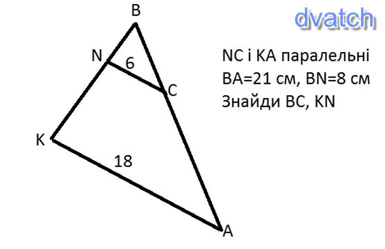 BC = 7 см, потому коеф. подобия = 18/6 =3 и BA / k=21/3 = 7 см