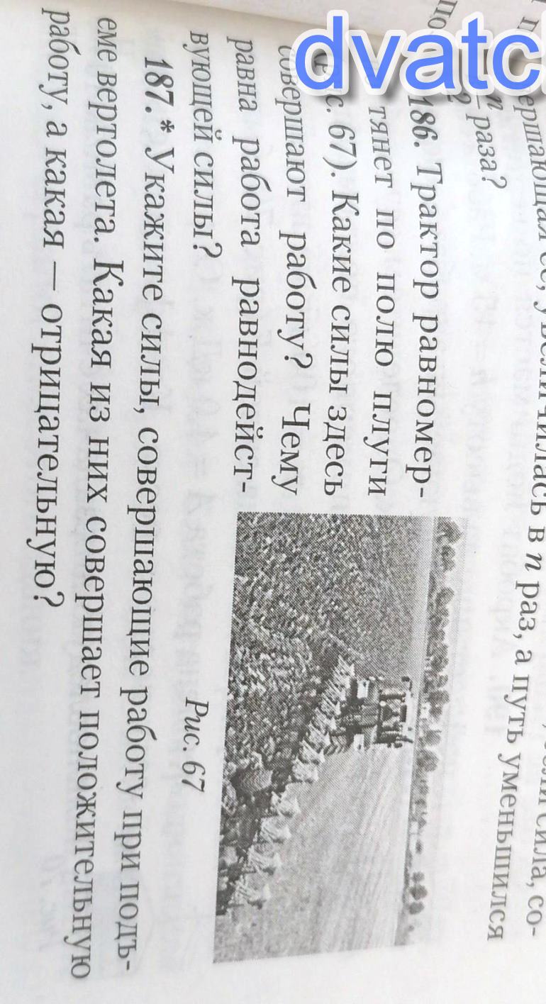 186. Трактор равномер-но тянет по полю Плуги(рис. 67). Какие силы здесьсовершают работу? Чемуравна работа равнодейст-вующей силы?Рис. 67 посчитайте