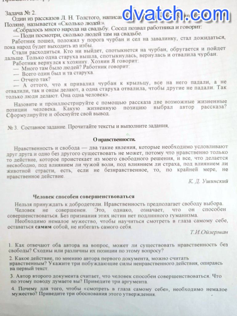 Задача 3: 1) Нравственность не может существовать без свободы, принуждение к добро деятельности-не нравственность. Тексты очень сходы по содержанию.