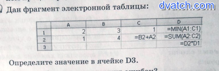 - Ячейка D1: =MIN(A1:C1) = 1