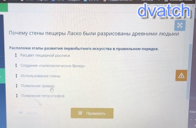 Почему стены пещеры Ласко были разрисованы древними людьми? Вера в духов и в душу – это: - первобытные верования, - древние религиозные верования, - научные представления о природе и человеке, - главная тема первобытного искусства, - древние существа, жившие вместе с первобытными людьми