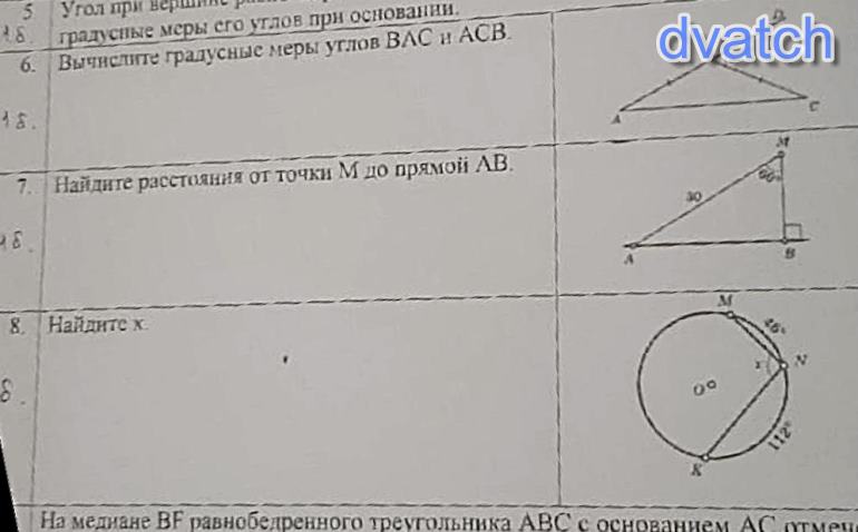 6) угол АВС+СВД=180 грдусов, тогда АВС=180-52=128. По-скольку треугольник АВС ранобедренный, тогда углы у него равны (ВАС=АСВ==26. )