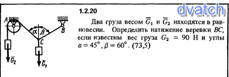 Натяжение ветви АС = G₂=90 H