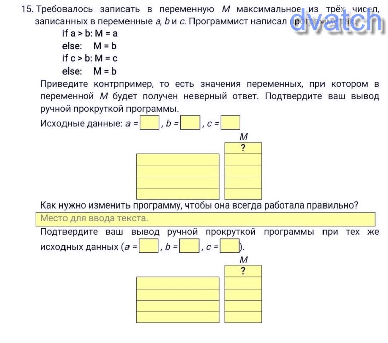Во второй программе сначала сравнивают первое и второе число и переменной М присваивают значение большего из них. Затем сравнивают третье число и переменную М и переменной М присваивают значение третьего числа, если оно больше. Программа выдаёт верный результат.