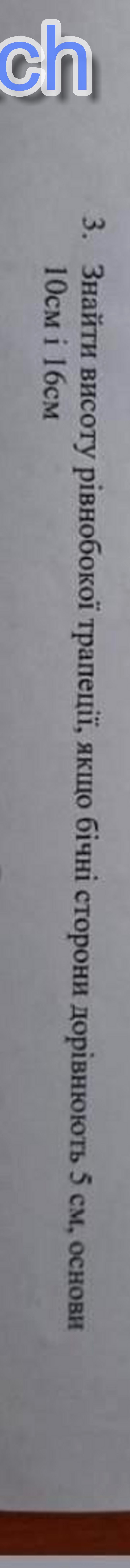 если провести висоту с вершини то получится прямоугольний триугольник, где бічна сторона це гіпотенуза, через те що це рівнобічна тряпеція і один з катетів дорівнює 3, другий катет (за теороемою піфагора) дорівнює 5