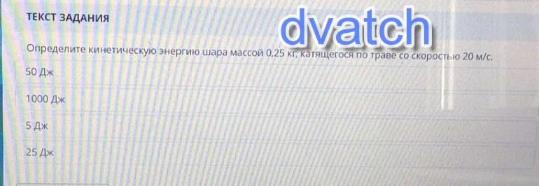Ек = mv²/2 = 0,25 кг × (20 м/с)² / 2 = 50 Дж