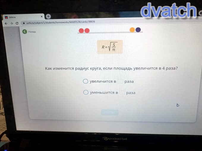 Если S увеличить в 4 раза, то радиус круга увеличится в 2 раза,