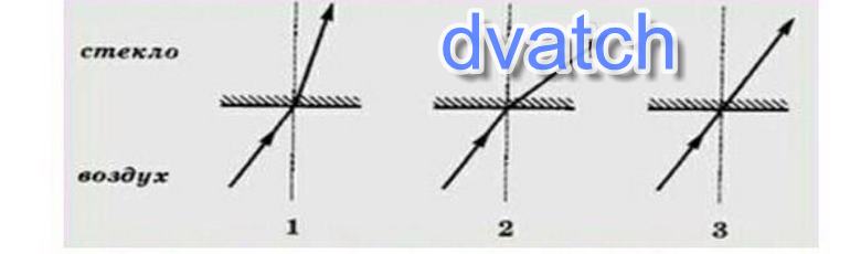 На рисунке показан световой луч, падающий из воздуха на поверхность стекла. Какое утверждение верно? А) верный ход лучей при преломлении изображен на рисунке 1В) верный ход лучей при преломлении изображен на рисунке 2С) верный ход лучей при преломлении изображен на рисунке 3D) верный ход лучей при преломлении изображен на рисунке 1,2E) верный ход лучей при преломлении изображен на рисунке 2,3