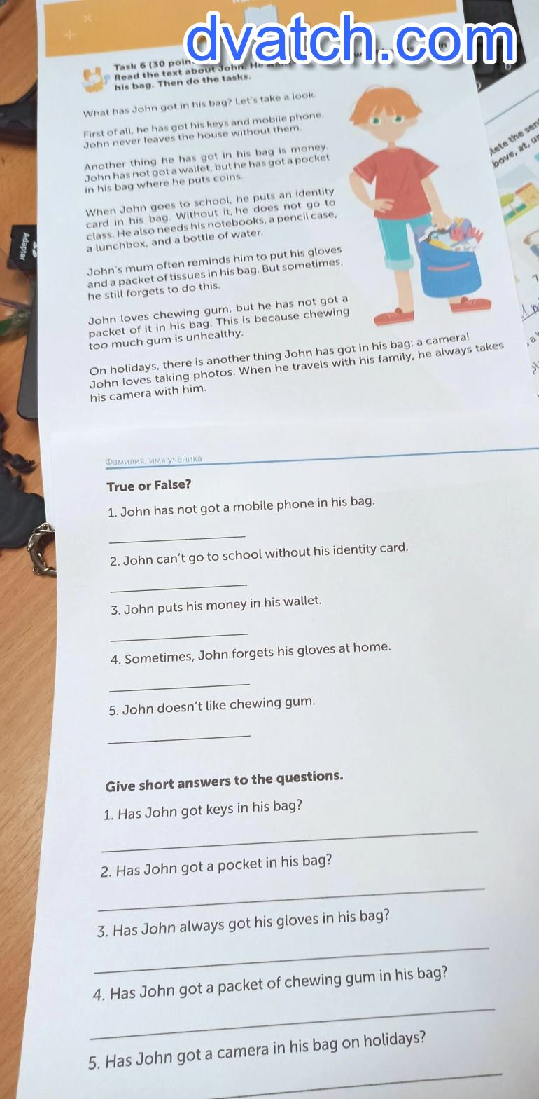 3. False, в тексте написано: John has not got a wallet, but he has got a pocket in his bag where he puts coins.