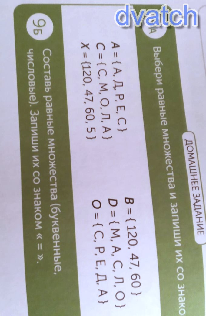 числовые: {3, 7, 9, 67}={7, 9, 3, 67}; {45, 89, 10, 12}={89, 12, 10, 45}