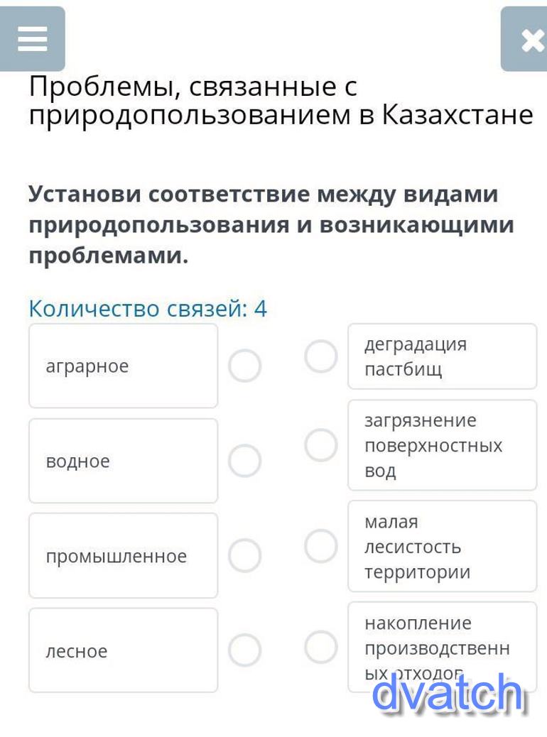 Аграрное-деградация пастбищ,водное-загрязнение поверхностных вод,промышленное-накопление производственных отходов,лесное-малая лесистость территории