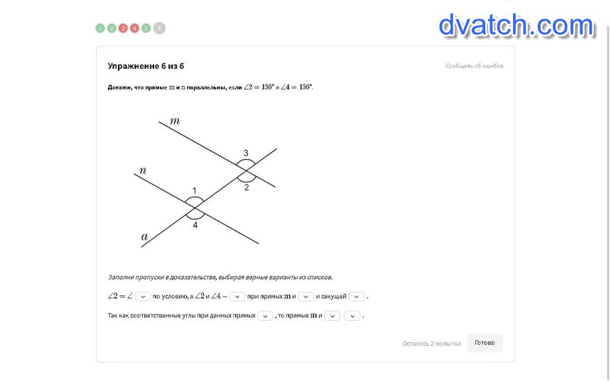 ∡2 = ∡4 по условию, а ∡2 и ∡4 - со ственные при прямых m и n и секущей a. Так как со ственные углы при данных прямых равны, то прямые m и n параллельны.