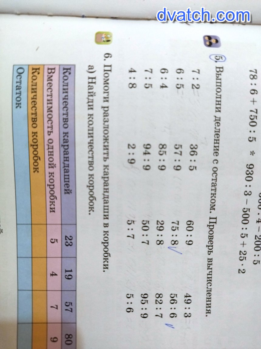Выполни деление с остатком. Проверь вычисления (только 3,4 столбик)