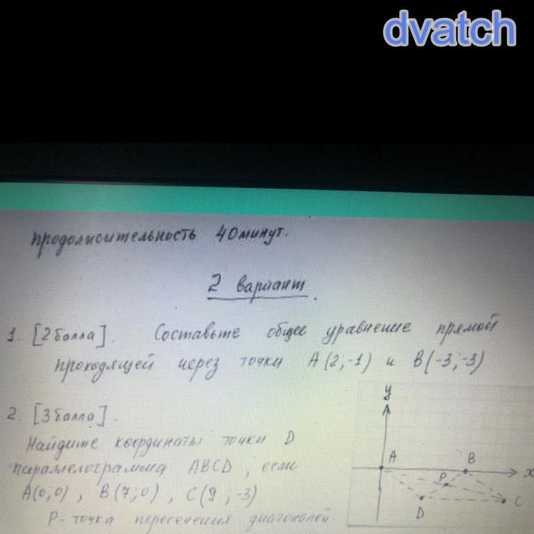 Составьте общее уравнение прямой проходящей через точки А (2;-1) и В (-3;-3)