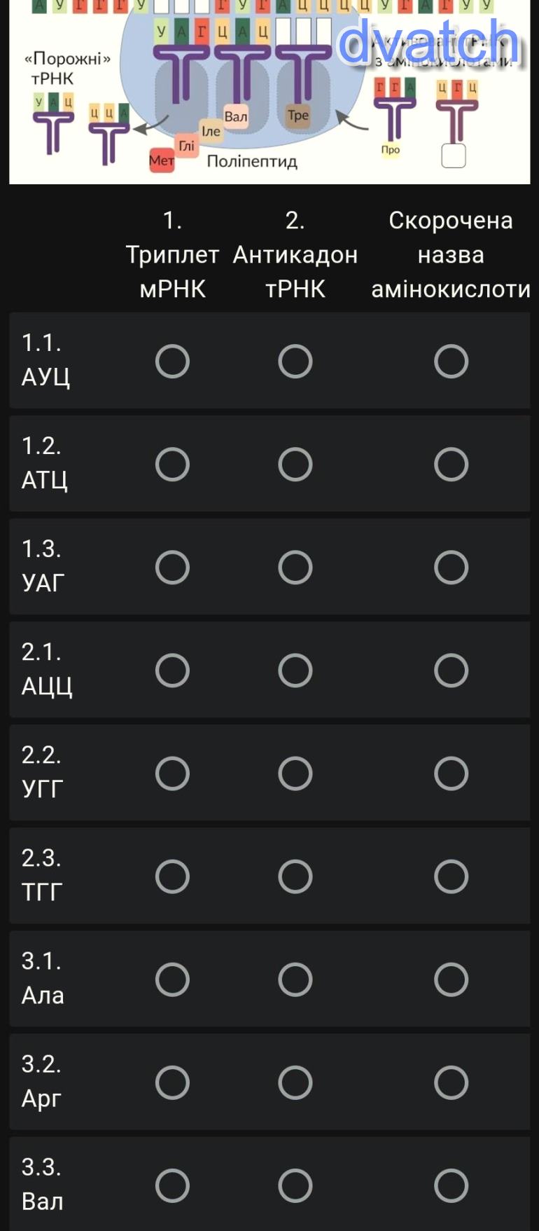 :1. Триплет мРНК: 1)АУЦ