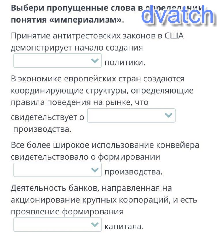 ПАМАГИТЕПЕ ПАЖЕЕЕЕЕЕ В 1 пробеле варианты:Антимонопольной КонцентрацииМассовогоФинансовогоВ 2. 3. 4 пробелах такие же варианты ответов . &. :&:@:
