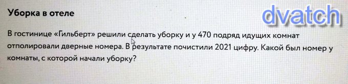 решение :2021-470=1551-он и является номером комнаты с которой начали уборку