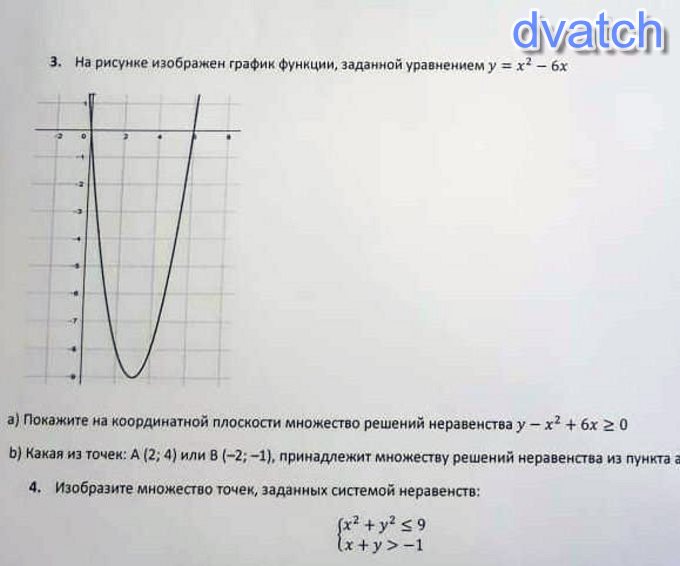 а) Множество решений неравенства у - х² +6х ≥ 0 находится внутри параболы
