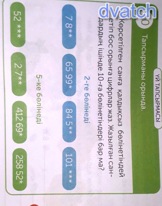 10-ға бөлінетіндер бар: 7800, 65990, 84500, 422690, 258520.