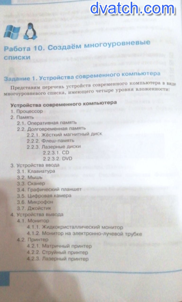 информатика шестой класс практическая работа номер 10 создаем многоуровневые списки задание номер 1 устройство современного компьютера в электронном виде
