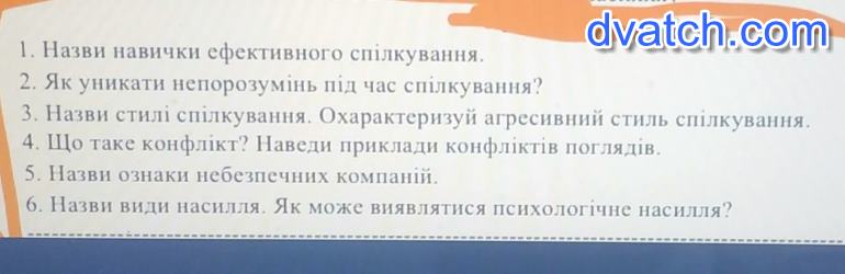 3)стилі спілкування-авторитарний, демократичний, ліберальний і змішаний. Охарактезувати агресивний стиль спілкування-Агресивні люди нехтують ввічливістю, вдаються до погроз, лайки і фізичної сили. Через це їх не люблять, бояться, уникають і можуть звинуватити навіть у тому, чого вони не робили. Часто прямолінійність, жорсткість і напосідливість у спілкуванні не тільки межують із грубістю, а й маскують внутрішню нерішучість людини.
