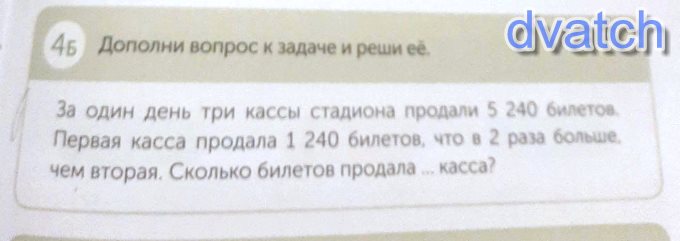 1240 : 2 = 620 (билетов) - продала вторая касса.
