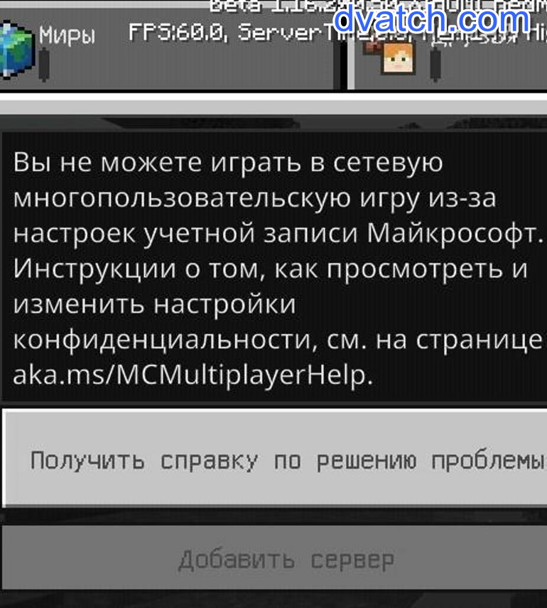 знаю не по теме но в майнкрафте я захожу поиграть на сервере (у меня есть аккаунт) и мне пишут: Вы не можете играть в сетевую многопользовательскую игру из за настроек учетной записи Майнкрасофт