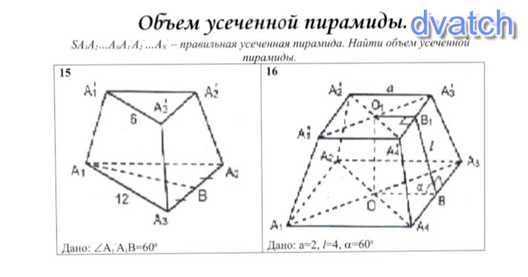 Сторона верхнего основаниЯ усеченной пирамиды а, а=2