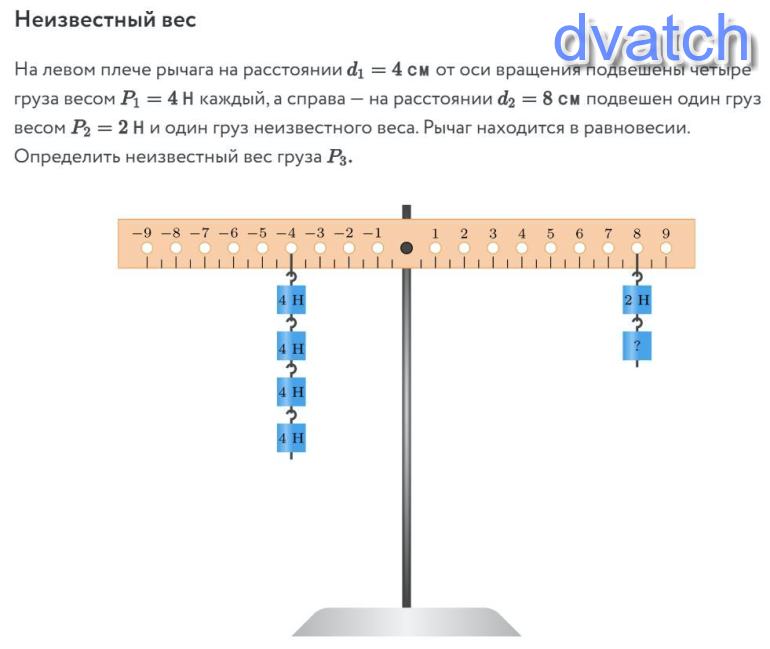 d2=8cm=0,08м плечо веса справа
