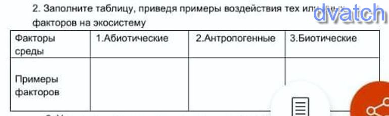 1. абиотические:Абиоти́ческий фа́ктор (др. -греч. α — отрицание, βίος — жизнь) — совокупность прямых или косвенных воздействий неорганической среды на живые организмы; подразделяется на физический (климат, орография), химический (состав атмосферы, воды, почвы). Приспособление растений и животных к жаре, холоду, атмосферному давлению, подводной глубине, зимняя или летняя спячка некоторых животных и прочее связано с абиотическими факторами.
